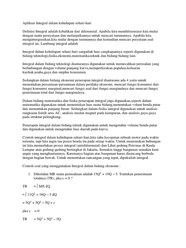 Contoh Soal Aplikasi Integral Dalam Kehidupan Sehari-Hari