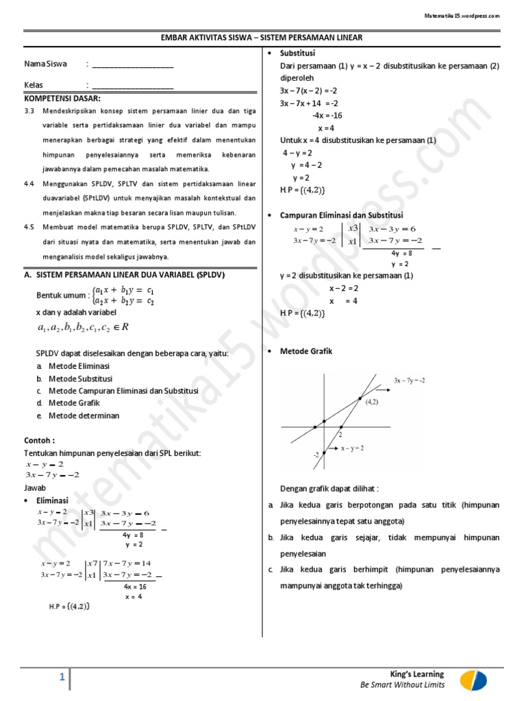 Ada metode substitusi, metode eliminasi, atau juga metode campuran dirasa kurang tepat untuk menyelesaikan spltv. Determinan adalah suatu bilangan yang berkaitan dengan matriks bujur sangkar (persegi). Rizal mempunyai 4 buah jeruk, kemudian 8 buah apel dan juga 12 buah manggis. Demikianlah pembahasan spldv soal cerita, semoga bermanfaat. Berdasarkan bentuk matriks di atas, bisa disusun determinan yang utama, determinan bentuk variabel x, determinan dari variabel y, dan memiliki determinan variabel z. Metode determinan sering juga disebut dengan metode cramer. Spltv, matematika kelas 10 sma, materi sistem persamaan linear, materi spltv kelas 10 pdf, metode gabungan spltv, metode substitusi spldv, pengertian spltv, sistem persamaan linear tiga peubah. Spldv yang diperoleh dapat diselesaikan dengan menggunakan metode yang pernah dipelajari (subtitusi dan eliminasi).