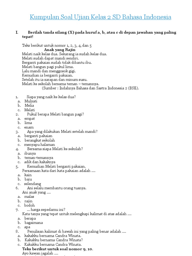 Contoh Soal Bahasa Indonesia